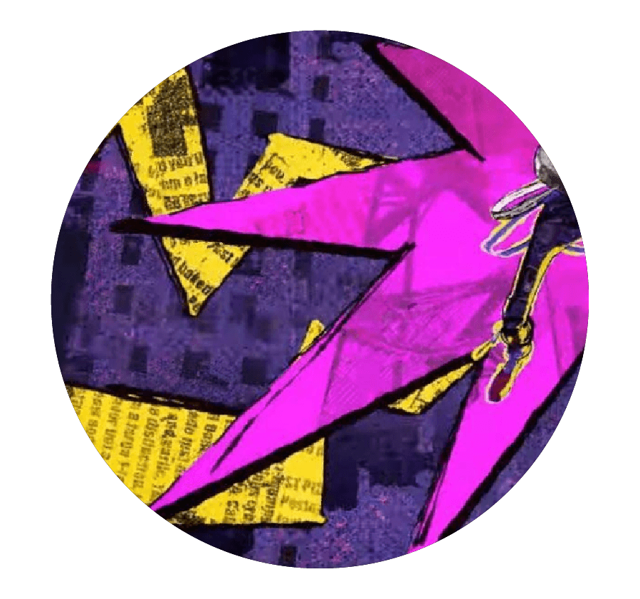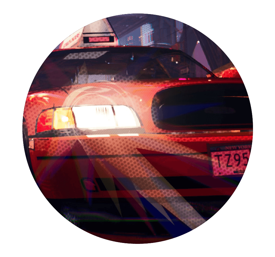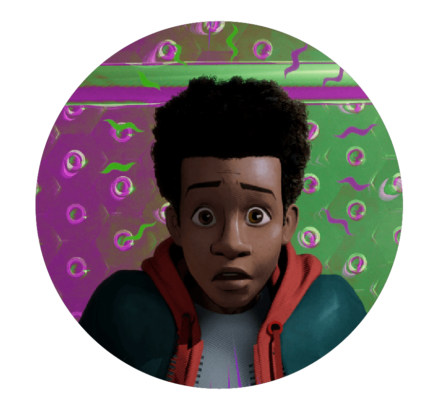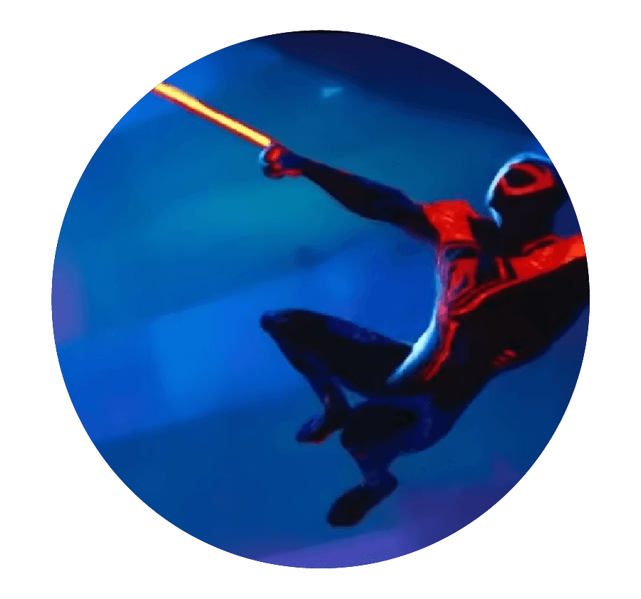 Slide the circle to compare a shot from Spiderman 2 and Spiderverse.